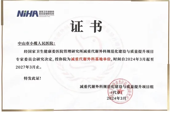 3月30日,减重代谢外科规范化建设与质量提升项目2023年度总结会议在北京召开。小榄人民医院作为中山市唯一一家入选单位,获得了国家卫健委医院管理研究所颁发的《减重代谢外科基地单位》认证。这是“国家卫健委减重代谢外科规范化建设和质量提升项目”的全国性认证。