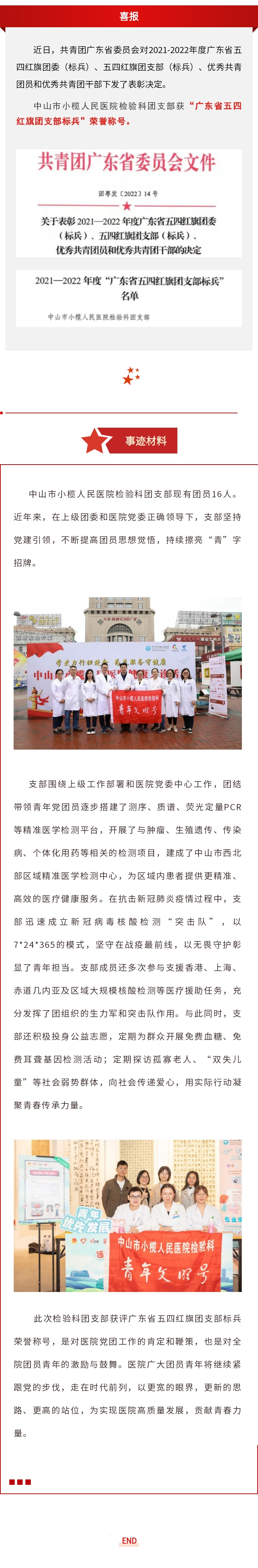 点赞!我院检验科团支部获“广东省五四红旗团支部标兵”荣誉称号