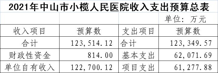 2021年中山市小榄人民医院收入支出预算总表