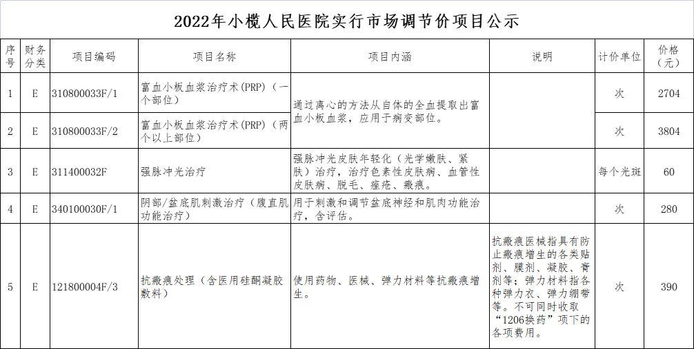 根据市医疗保障局《转发广东省医疗保障局关于公布〈广东省基本医疗服务价格项目目录(2021年版)〉、〈广东省市场调节价医疗服务价格项目目录(2021年版)〉的通知》(中山医保发〔2021〕22号)文件要求,为满足患者就诊及临床工作需要,我院按照公开透明、合法合理、诚实信用的原则,自主制定富血小板血浆治疗术(PRP)等5个医疗服务项目及价格标准,公示期满予以收费。