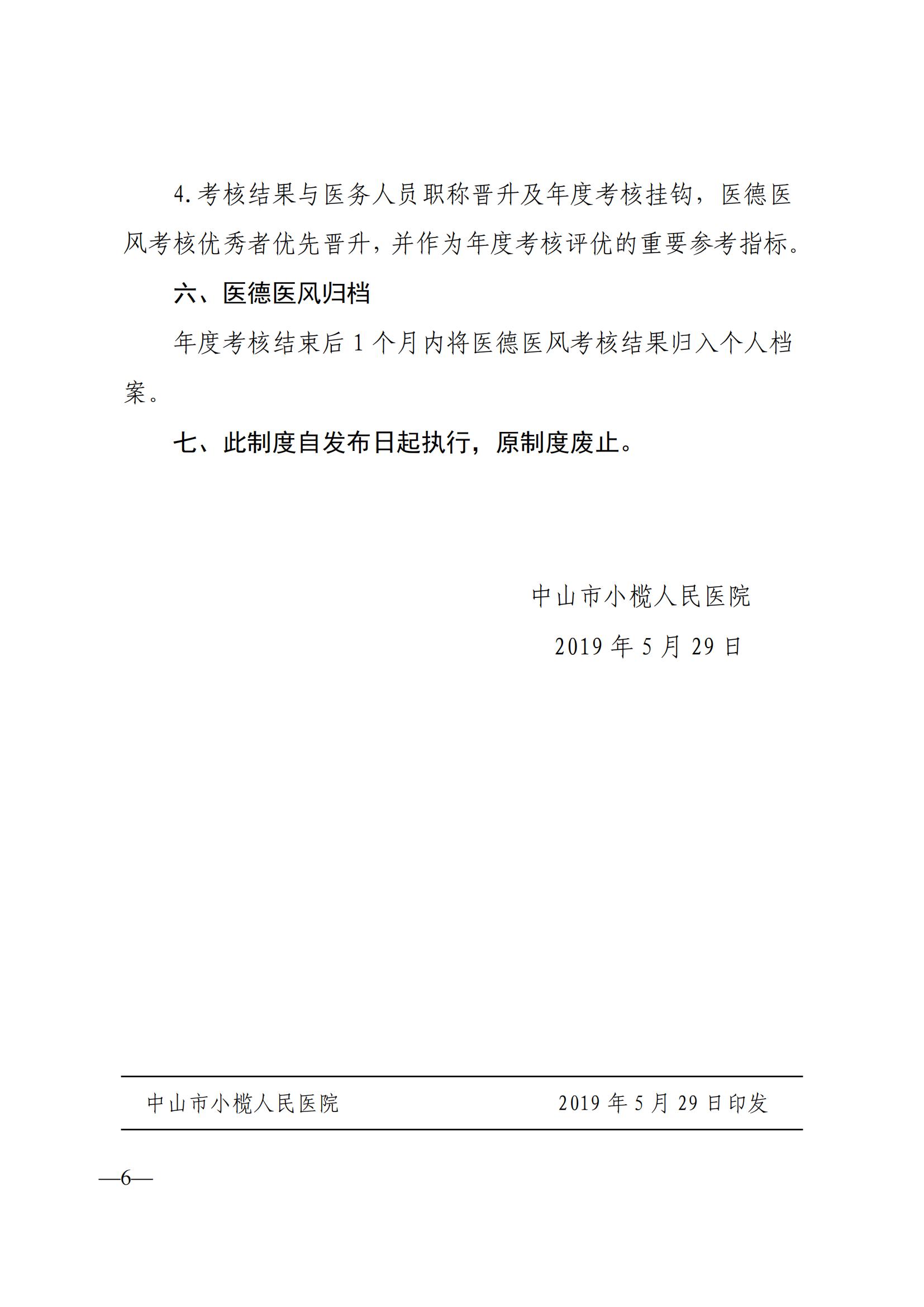 中山市小榄人民医院关于修订《医德医风教育与考核制度》的通知