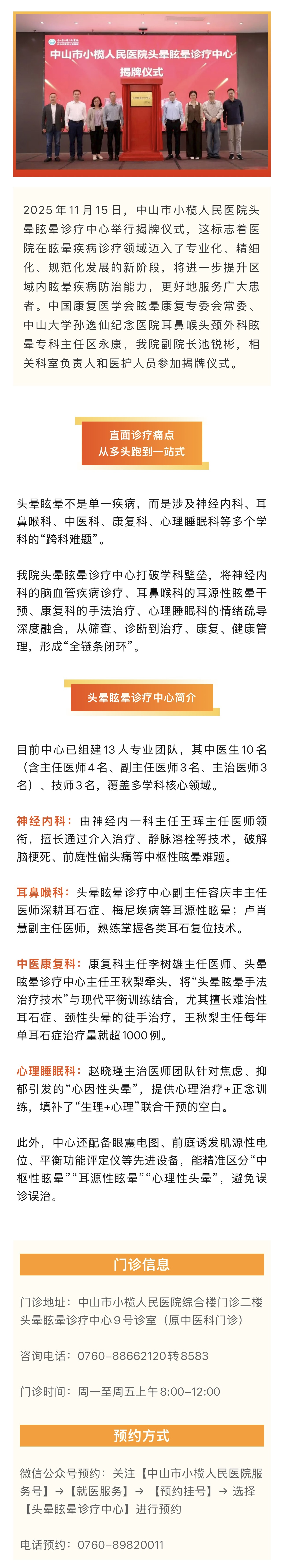 中山首家 | 头晕眩晕诊疗中心揭牌